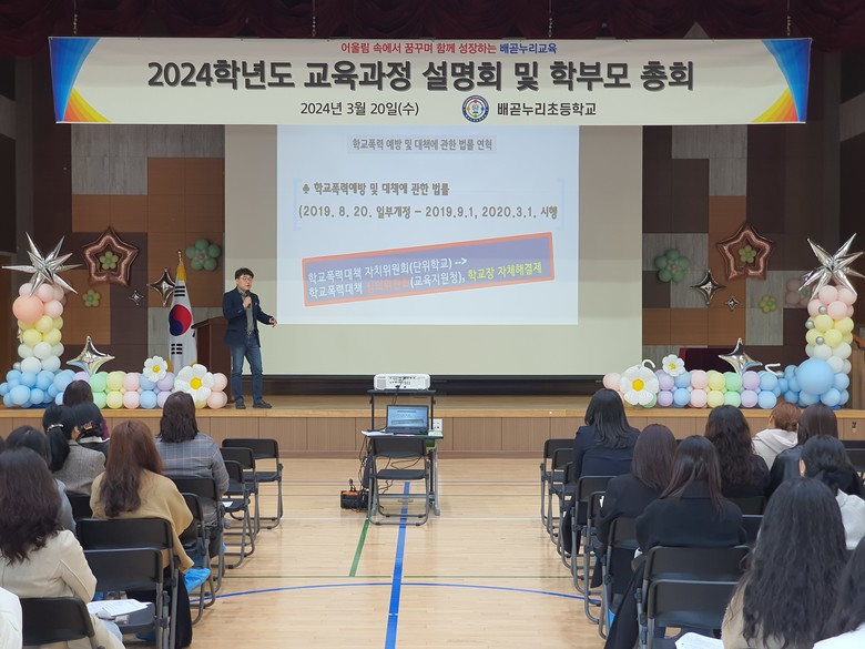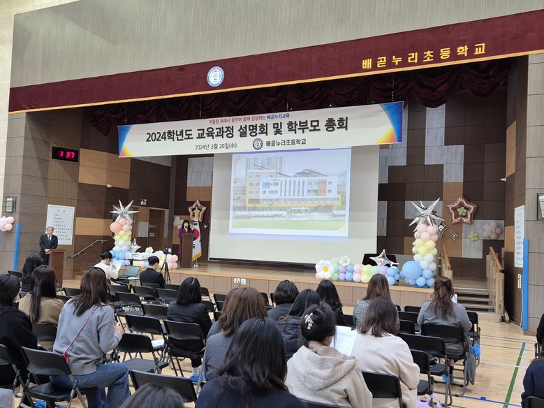 [시흥시 세계타임즈=송민수 기자] 배곧누리초등학교(교장 정유진)는 20일 오후 13시 30분부터 ‘함께 시작하는 한 걸음, 행복한 동행’이라는 주제로 교육과정 설명회 및 학부모 총회를 개최하였다. 이번 설명회는 많은 학부모가 참여하여 2024학년도 배곧누리초등학교 교육활동에 기대감을 나타냈다.