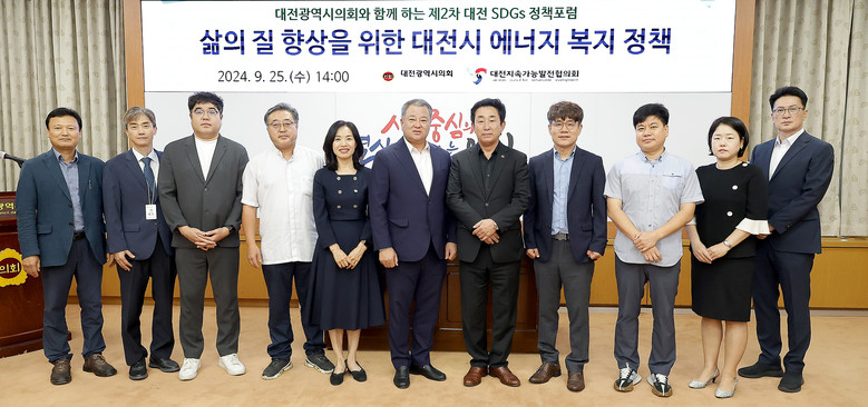 [대전 세계타임즈=이채봉 기자] 대전시의회는 25일 오후 2시 시의회 소통실에서 삶의 질 향상을 위한 에너지 복지* 정책을 주제로 ‘제2차 SDGs(Sustainable Development Goals, 지속가능발전목표) 정책포럼’을 개최했다.