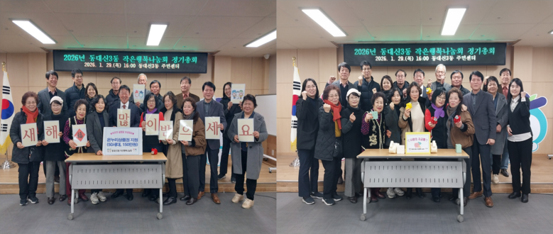 [서구 세계타임즈=이용우 기자] 부산 서구 동대신3동 작은행복나눔회(회장 박대호)는 지난 1월 29일 후원자 등 30여 명을 모시고 2026. 정기총회를 개최하였다. 우수후원자에 대한 표창과 사랑의 저금통으로 어려운 이웃을 돕는 모금 행사에 90여만 원 모아 나눔회 기금에 보탰다.