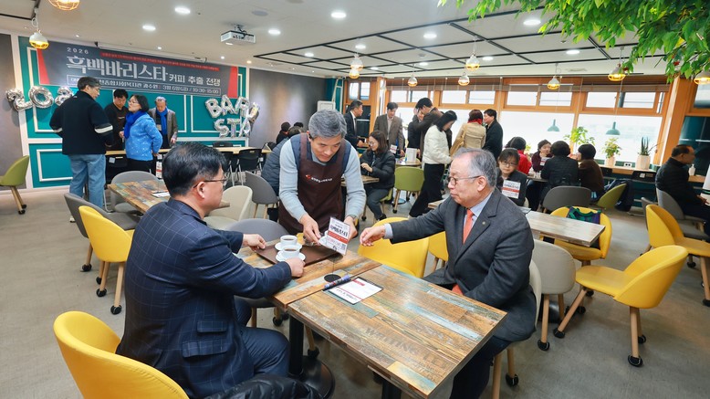 [과천시 세계타임즈=송민수 기자] 과천시는 과천종합사회복지관이 6일 복지관 내 ‘과수원’ 공간에서 지역 주민들과 함께 커피 나눔 행사 ‘흑백바리스타’를 개최했다고 밝혔다.