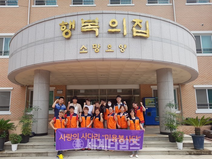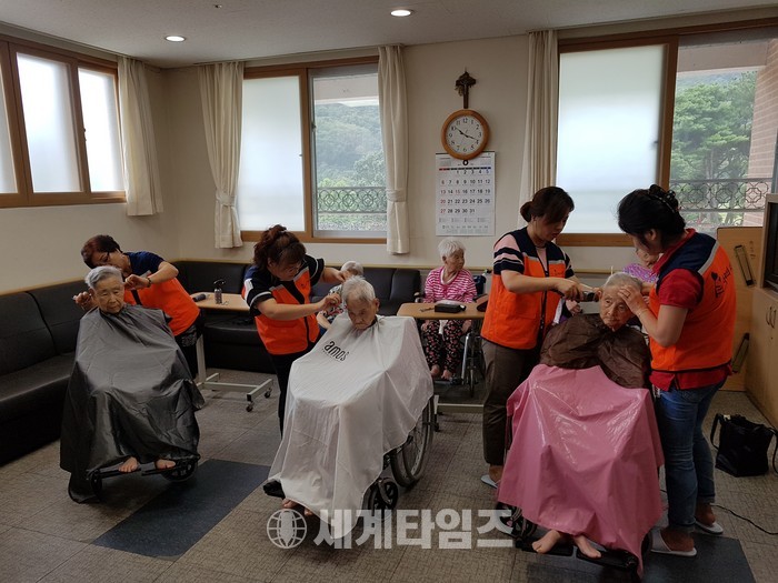 [대전=세계타임즈 이장성 기자] 5천명의 회원들이 활동하는 자발적인 SNS봉사 밴드인 사랑의 사다리 밴드(리더 이정제, 대전광역시 대덕구 중리동 소재 비영리민간단체)는 8일 오전 10시~오후1시까지 충북 청주시 서원구 현도면에 위치한 꽃동네 행복의집 소망노인요양원(원장 김순여 시몬수녀)에서 치매와 와상 어르신들 50여분께 미용봉사와 말벗봉사로 훈훈한 이웃사랑을 전했다.