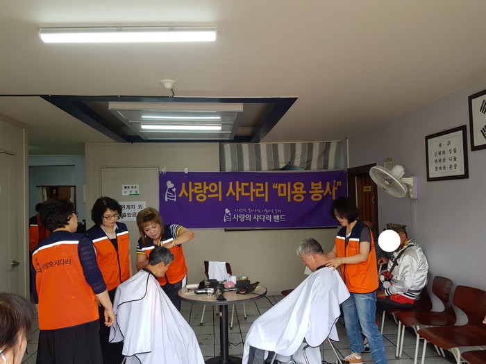 이날 미용봉사에는 송남석 미용봉사단장을 비롯해서 김미경, 김현옥, 이하영, 조선옥, 조은숙 가위천사 회원들이 참석을 하였다.