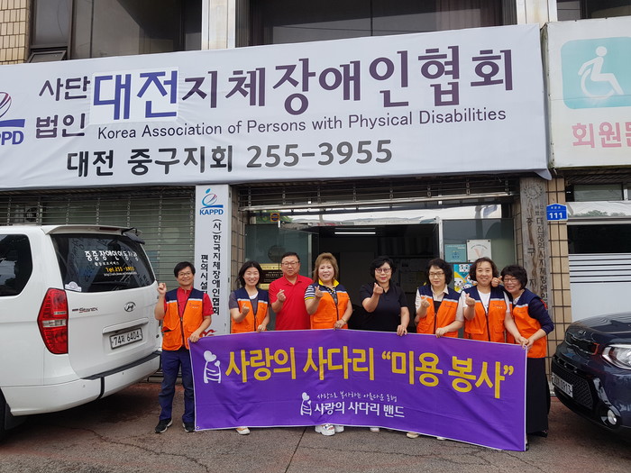 중구장애인협회 김채린 지회장은 “오늘 사랑의 사다리 밴드 봉사단체에서 미용봉사를 지원해주셔서 큰 힘과 위안이 된다.“면서 감사함을 전했다.