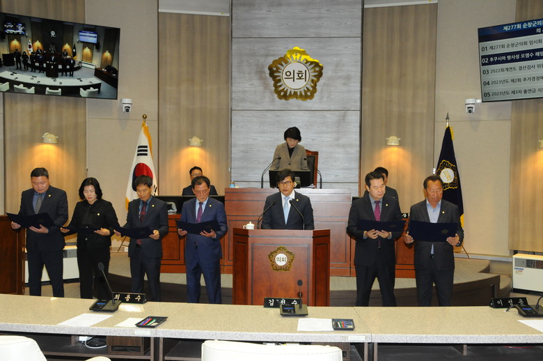 순창군의회는 일본 정부가 방사능 오염수와 관련된 모든 정보를 투명하게 공개하고 국제사회와 협의할 것과 안정성이 확보될 때까지 방사능 오염수 방류 결정을 철회할 것, 우리 정부가 해양생태계 보전과 국민안전을 위해 일본의 방사능 오염수 방류 결정에 대해 강력하고 단호하게 대응해야 한다는 내용이 담긴 결의문을 국회의장과 행정안전부장관 및 전국 시군구에 송부했다.