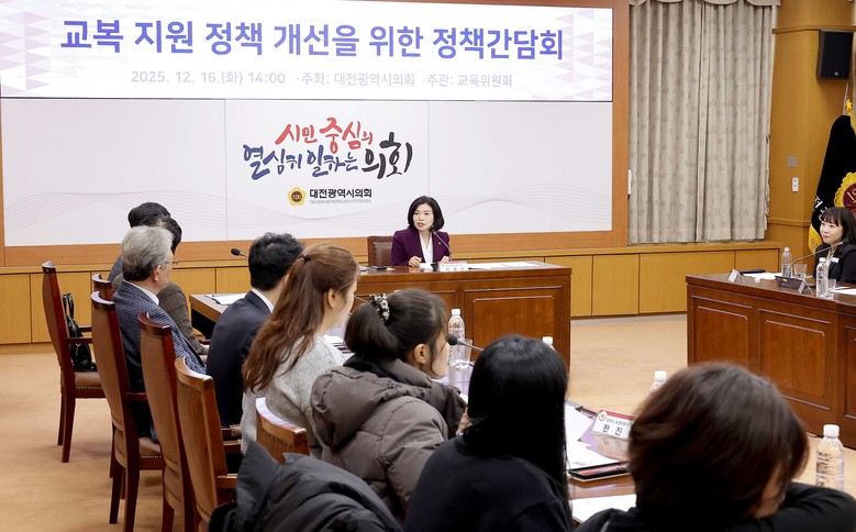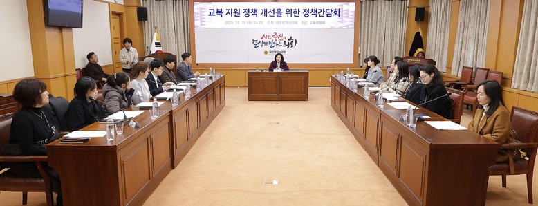 [대전 세계타임즈=이채봉 기자] 대전시의회는 16일 시의회 소통실에서 이금선 의원(국민의힘, 유성구4) 주재로 ‘교복 지원 정책 개선을 위한 정책간담회'를 개최했다.