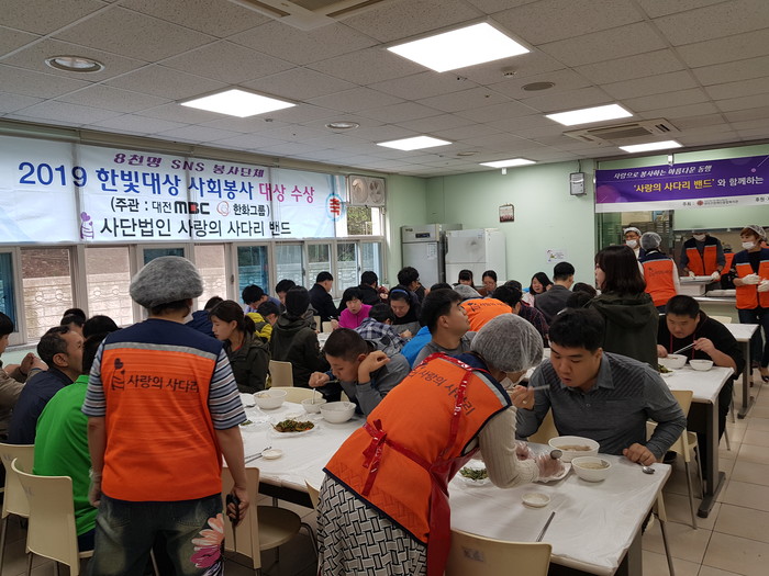 대덕구장애인종합복지관 안광훈 관장은 “오늘 사랑의 사다리 밴드 봉사단체에서 삼계탕을 지원해주셔서 큰 힘과 위안이 된다.”면서 감사함을 전했다.