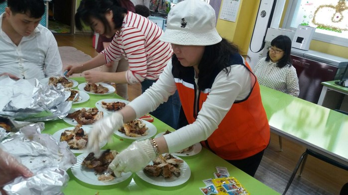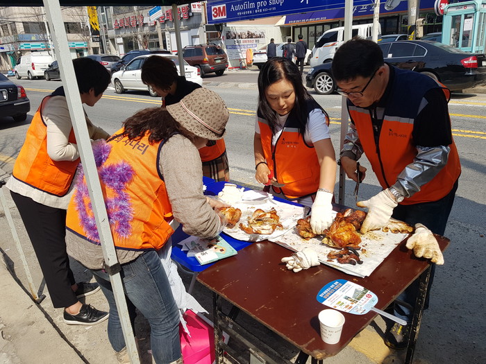 이날 봉사에는 바비큐통닭 신상일회장, 유희자 나눔봉사단장을 비롯해서 회원15명이 더운 날씨에도 장애인 80명, 경로당 어르신 90명 등 170명에게 뜨거운 통닭을 직접 만들고 배달까지 봉사를 하였다.