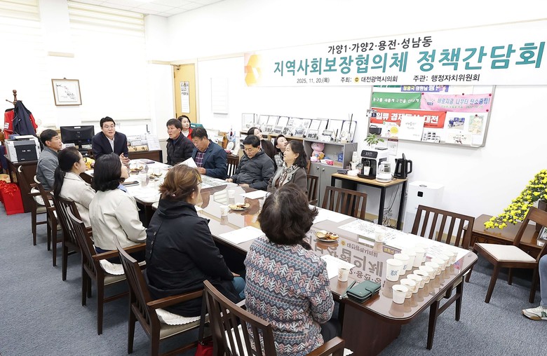 [대전 세계타임즈=이채봉 기자] 대전시의회 행정자치위원회 정명국 위원장(국민의힘, 동구 3)은 20일 시의회 행정자치위원장실에서 ‘가양1·가양2·용전·성남동 지역사회보장협의체 정책간담회’를 개최하고 협의체 운영 현황과 현장 애로사항을 청취했다.