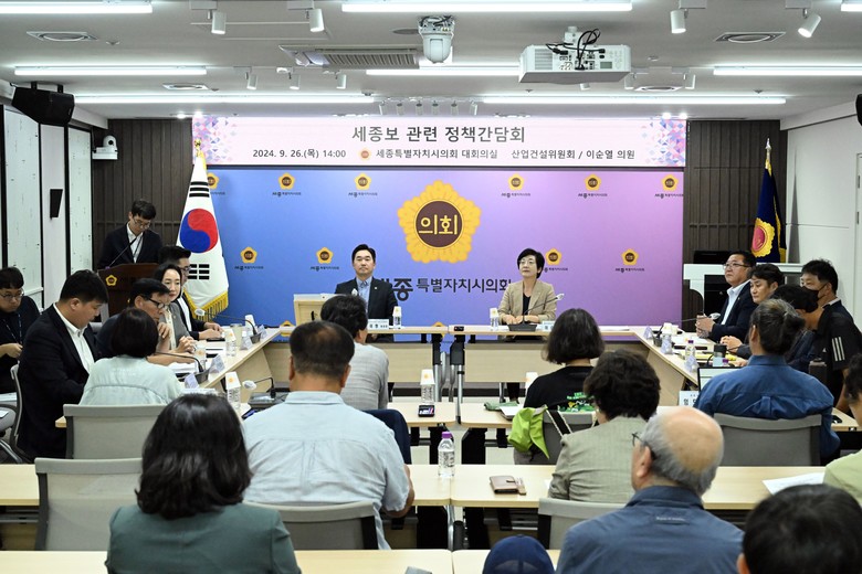 [세종 세계타임즈=이채봉 기자] 세종특별자치시의회(의장 임채성) 산업건설위원회(위원장 김재형)는 26일 행정복지위원회 이순열 의원과 함께 세종보에 대한 정부정책과 관련하여 다양한 사회 각계각층의 의견을 수렴하고 논의하는 자리를 마련하고자 정책간담회를 개최했다.