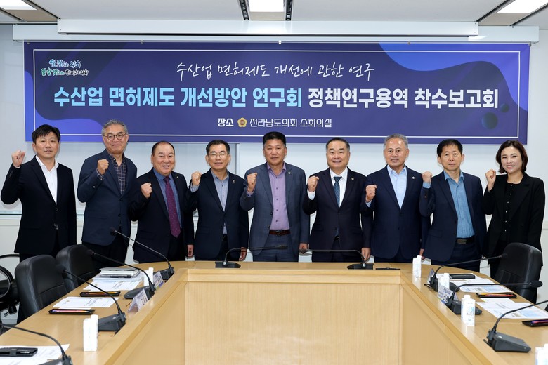 [전남 세계타임즈=우덕현 기자] 전남도의회 의원연구단체 수산업 면허제도 개선방안 연구회(대표의원 신의준)는 지난 5월 9일 전라남도의회 소회의실에서 ‘수산업 면허제도 개선에 관한 연구’ 용역에 대한 착수보고회를 열고 본격적인 연구 활동을 시작했다.