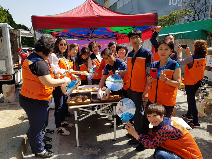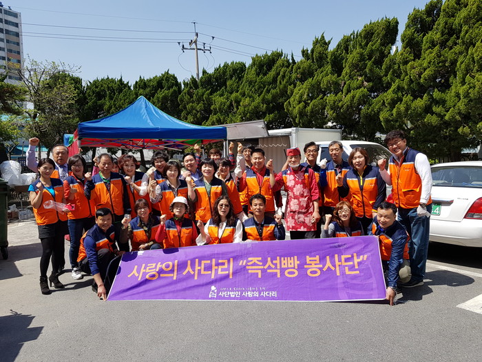 [대전=세계타임즈 이장성 기자] 대전광역시 봉사 단체 사단법인 사랑의 사다리 밴드(리더 이정제)는 18일 오전9시, 동구 홍도동 현암아파트에서 회원 20명이 참석해서 즉석빵 600개를 만들어 경로당 15곳과 보육원 3곳에 전달을 하면서 우리 사회의 따뜻한 정을 나누었다,