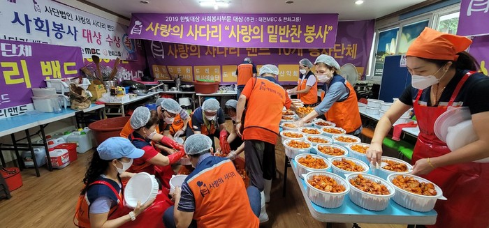 [대전=세계타임즈 이채봉 기자] 대전광역시 SNS 일만명 봉사단체 사랑의 사다리 밴드(리더 이정제)는 8일 오전9시~오후1시에 대덕구 중리동에 위치한 사랑의 사다리 밴드 사무실에서 밑반찬을 만들어서 서구 소외계층 52가정에 전달을 하였다.