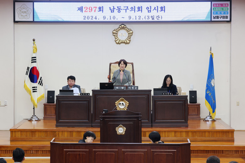[남동구 세계타임즈=심하린 기자] 남동구의회(의장 이정순)는 10일 제297회 임시회를 개회하고 오는 12일까지 3일간의 의사일정에 들어간다.