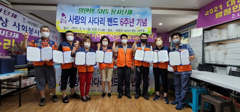 [대전 세계타임즈=이채봉 기자] 6년째 꾸준히 대전시 소외계층을 위해서 다양한 봉사를 펼치고 있는 대전시 봉사단체 사랑의 사다리 밴드(리더 이정제)는 8일 대덕구 중리동에 위치한 사무실에서 사단법인 사랑의 사다리 밴드 6주년 기념행사로 지역사회를 위해 더 큰 봉사를 다짐했다.