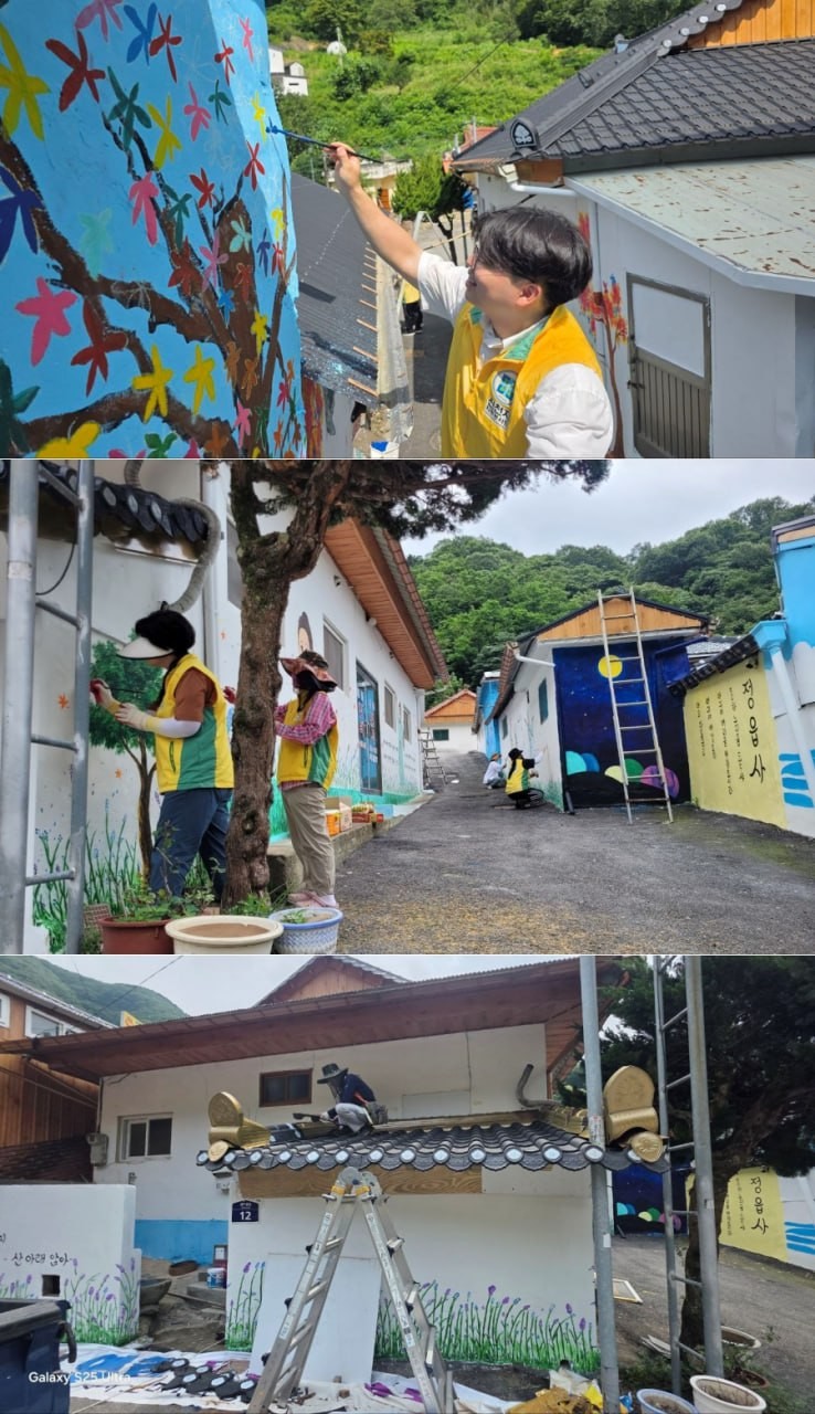 지난해 6월부터 26일간 신천지자원봉사단 전북지역연합회가 정읍 용하 마을에서 벽화와 한 가구의 지붕 교체 봉사를 진행하고 있다.