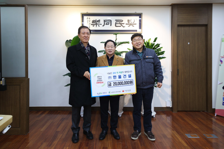㈜한울건설은 토목건축공사 및 주택건설, 부동산개발을 영위하는 종합건설회사로, 시에 지사를 두고있다. 그동안 남양주시복지재단과 경기사회복지공동모금회, 남부희망케어센터 등을 통해 현재까지 누적 기탁금 9,325만 원에 달하는 후원을 꾸준히 이어 왔다.