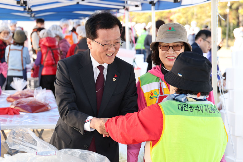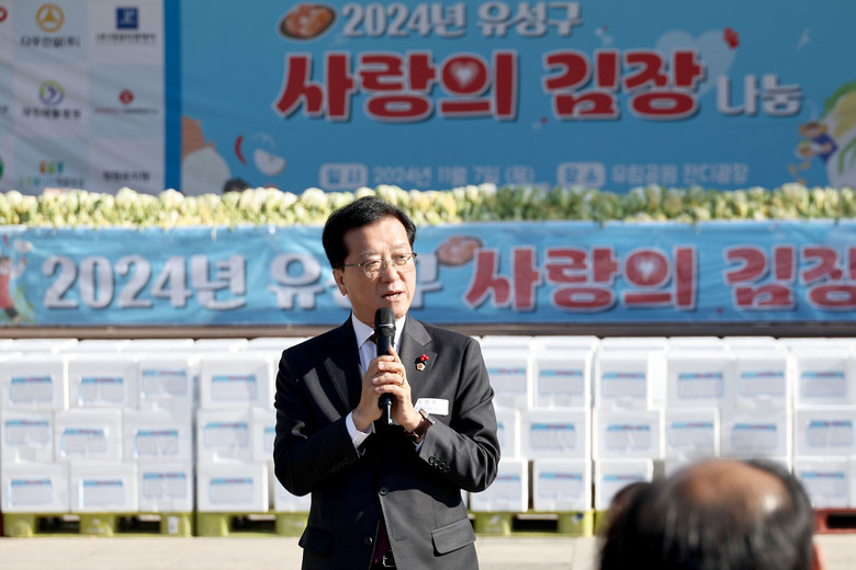 [대전 세계타임즈=이채봉 기자] 대전시의회 조원휘 의장은 7일 유림공원 잔디광장에서 열린 ‘2024 유성구 사랑의 김장 나누기’행사를 찾아 “자원봉사들의 온정이 담긴 김장과 함께 올 겨울이 더욱더 따뜻해지길 기대한다”고 전하고, 함께 김장을 담그며 이웃사랑을 실천에 동참했다.