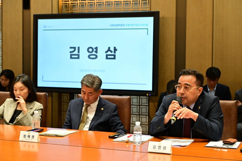 [대전 세계타임즈=이채봉 기자] 대전시의회 김영삼 부의장은 24일 국회 본관에서 열린 ‘국회 입법박람회 지방의회 라운드테이블’에 참석해 저출생·지방소멸 대응을 위한 제도 개선 필요성을 강력히 주장했다.