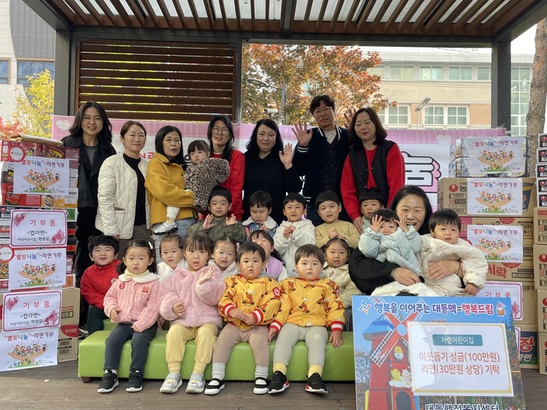 이지현 대동장은 “어린이집 교직원과 학부모, 원아들의 따뜻한 마음에 감사드린다” 며 “기탁해 주신 성금과 라면은 관내 어려운 이웃에게 소중히 전달하겠다”고 전했다.