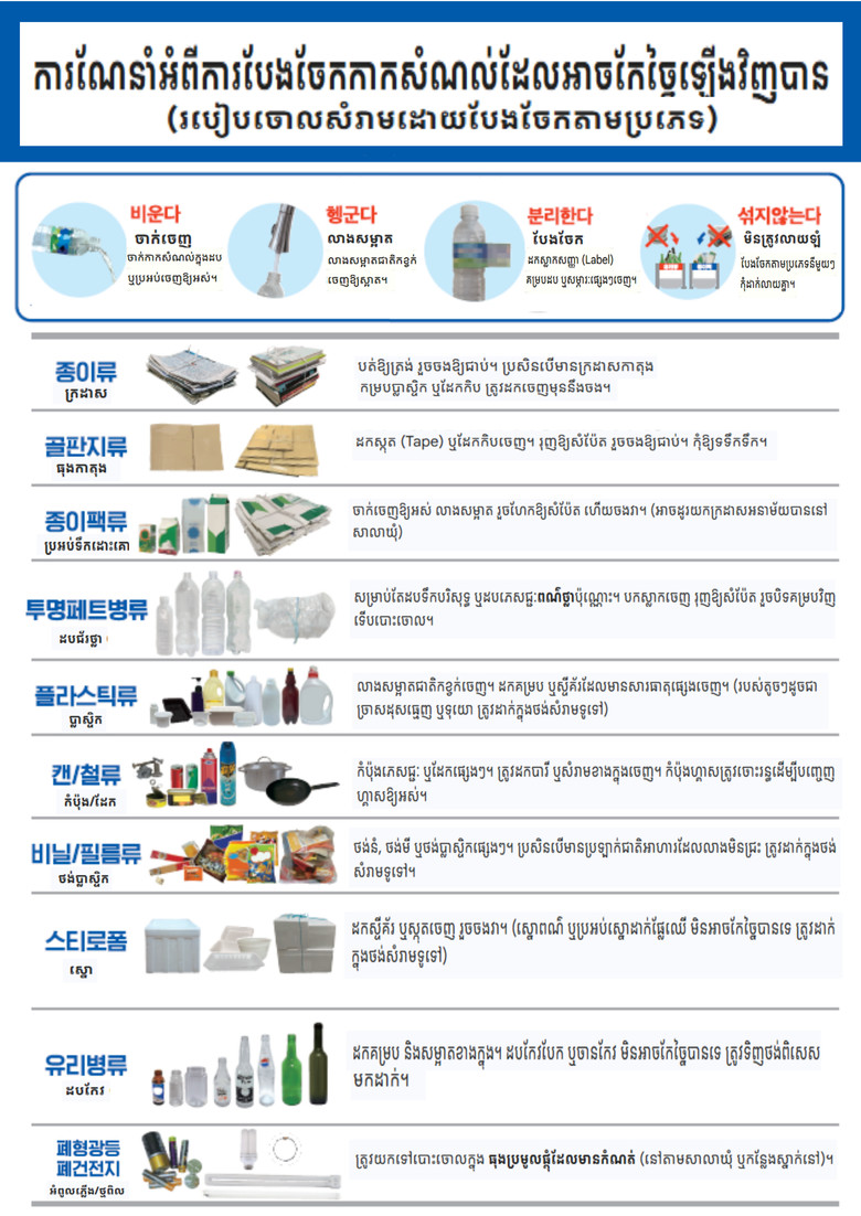 이에 군은 선제적으로 다수 외국인이 입국하는 캄보디아 계절근로자를 대상으로 다국어(크메르어)로 제작한 무단투기 방지 안내문과 쓰레기 분리배출 안내문을 배포하고, 집중 교육을 실시해 분리배출 정보에 대한 접근성을 높였다.