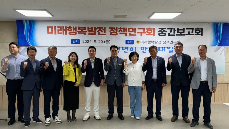 이날 보고회에는 미래행복발전 정책연구회 회원을 비롯해 본 연구용역의 수행하고 있는 (사)한국정책학회 연구진과 관계 공무원들이 참석하여, 연구의 중간 성과를 공유하고 향후 과제에 대해 심도 있는 논의를 진행했다.