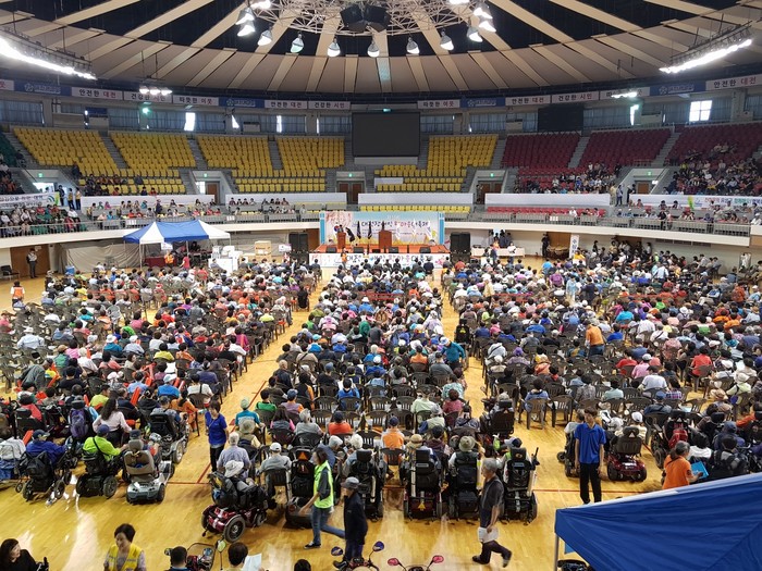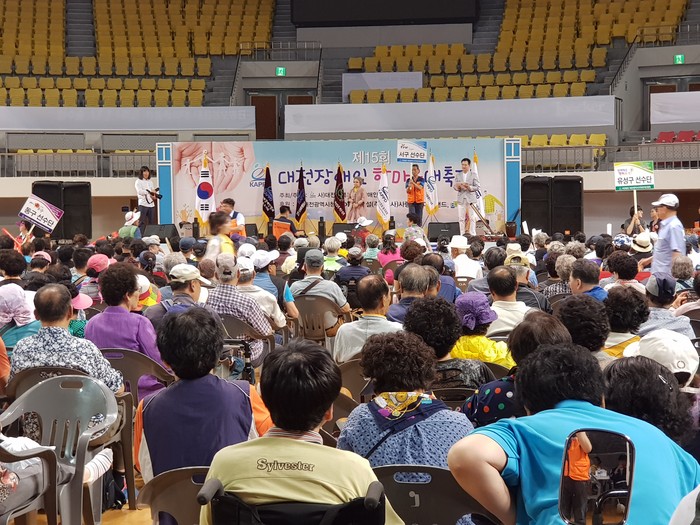 대전시지체장애인협회 박태규 회장은 “제15회 대전시장애인 한마음 대축제 행사를 위해서 약7시간 전체 봉사를 해주신 사랑의 사다리 밴드에게 감사를 전한다,“고 말했다.