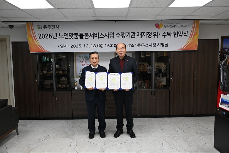 이번 협약은 동두천시노인복지관을 노인맞춤돌봄서비스 수행기관으로 재지정해 사업의 연속성과 전문성을 확보하고, 2027년까지 맞춤형 돌봄서비스를 안정적으로 제공하기 위해 추진됐다.