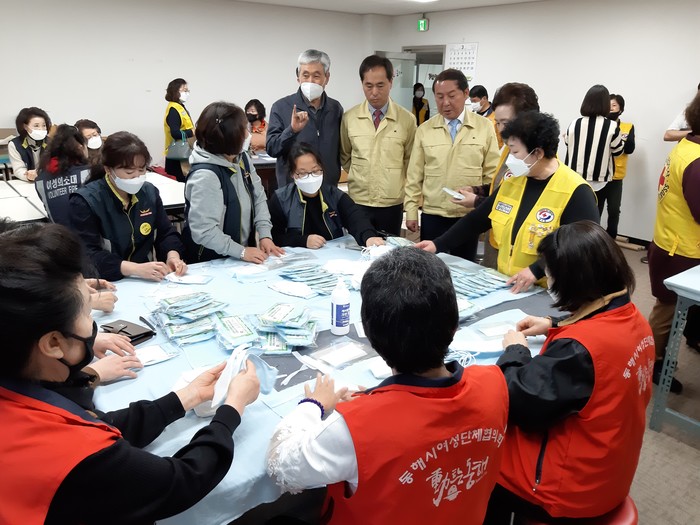 [동해시=세계타임즈 김민석 기자] 동해시의회(의장 최석찬)는 27일 코로나19 확산방지를 위해 총력을 기울이고 있는 관계 기관과 마스크 제작현장, 종합버스터미널 등 9개소 현장근무자를 찾아 노고를 치하하고 간식 등 150만원 상당의 위문품을 전달했다.