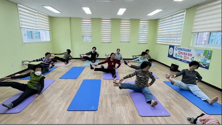 2023년, 2024년에 큰 인기를 끌었던 ‘어르신 요가 교실 : 일어나요’는 치매 예방체조를 병행하며, 어르신들의 신체 활동 증가 및 유연성 강화에 기여할 것으로 기대된다.