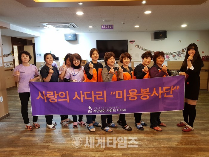 사랑의 사다리 밴드 미용봉사(회장 김정자)는 한 달에 3회씩 노인요양원과 군부대에서 꾸준하게 봉사를 하고 있다.