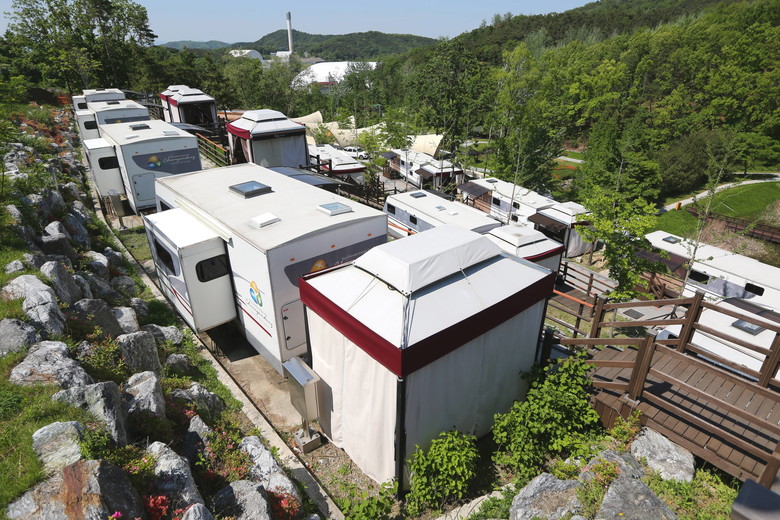 | ▲ 총 16대의 거실 확장형 카라반이 배치된 보문(별빛)카라반파크 전경 |