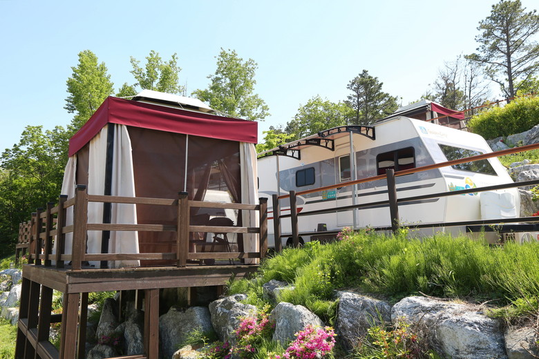 카라반 16대와 글램핑 4동이 마련돼 있으며, 넓은 거실 공간과 개별 바비큐 텐트 등 편의시설이 갖춰져 있다.