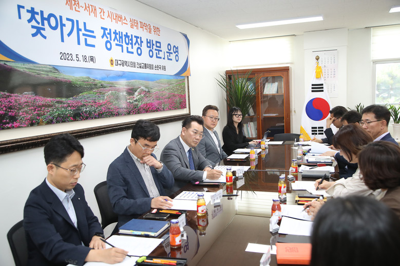 [대구 세계타임즈=한성국 기자] 대구시의회 손한국 의원(건설교통위원회, 달성군3)은 5월 18일(목) 세천리, 서재리 학생들의 통학 실태를 살펴보고, 서재중학교 교사 및 지역 주민들과 만나 시내버스 노선의 문제점 등에 대해 논의했으며, 불합리한 시내버스 노선에 대한 대구시의 적극적인 대응을 주문했다.