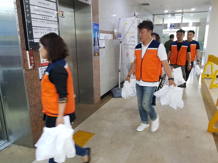 [대전=세계타임즈 이장성 기자] 대전광역시 봉사 단체 사단법인 사랑의 사다리 밴드(리더 이정제)는 21일 오후1시, 동구 원동에 위치한 대전시농아인협회(회장 박종희)에서 농아인 60명에게 바베큐 통닭을 전달하면서 우리 사회의 따뜻한 사랑을 나누었다.