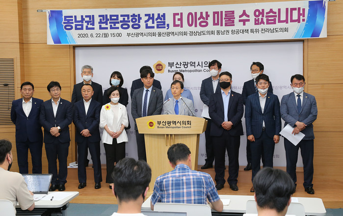 [부산=세계타임즈 장경환 기자] 부산시의회, 울산시의회, 경남도의회(동남권 항공대책 특위), 전남도의회(이하 “시도의회”라 한다.)는 22일 오후, 부산시의회 브리핑룸에서 ‘국무총리실 검증위원회의 김해신공항 적정성 검증에 대한 조속한 결정과 동남권 관문공항 건설을 촉구’하는 호소문을 발표했다.