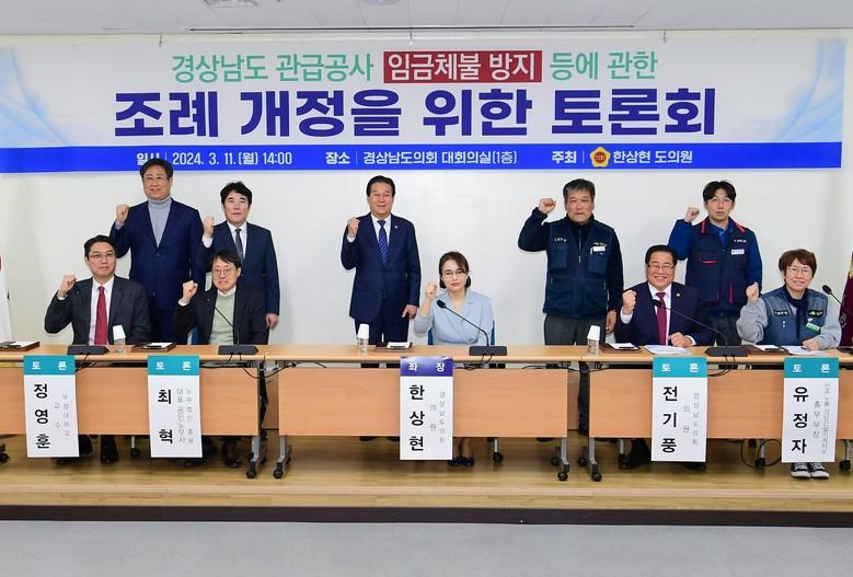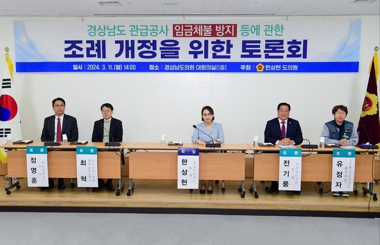 도의회 한상현 의원(더불어민주당, 비례)은 경남도가 발주하는 관급공사 운영에 있어 노동자의 임금이나 건설기계 임대료 등의 체불을 방지하기 위해 11일 오후 경상남도의회 대회의실에서 「경상남도 관급공사 임금체불 등에 관한 조례」 개정 토론회를 개최했다.