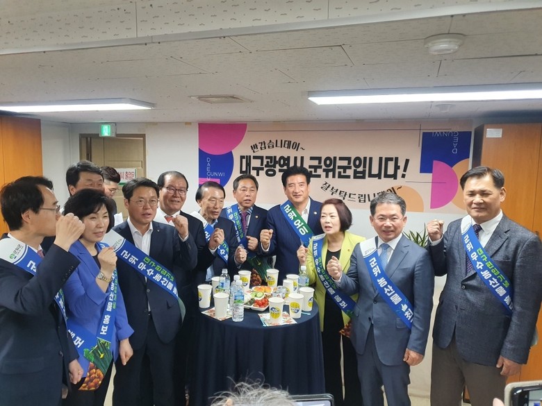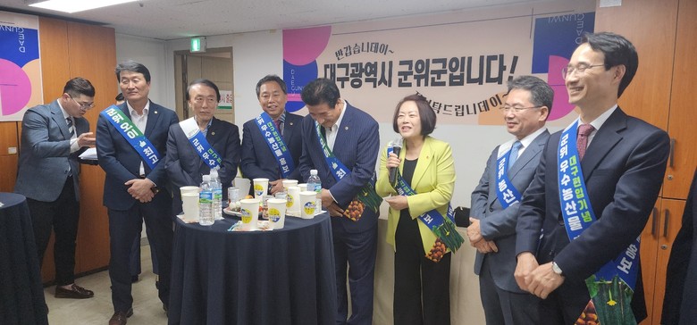 [대구 세계타임즈=한성국 기자] 대구시의회 경제환경위원회(위원장 이태손)가 4월 28일(금) 오후, 농협하나로마트 성서점에서 열리고 있는 ‘군위군 농축산물 특판행사’에 참석해 행사장을 방문한 군위군 관계자를 만나 군위 농정 현안을 논의하며, 두 달 뒤로 다가온 군위군 편입에 대비해 농정 분야 현안 파악에 나섰다.