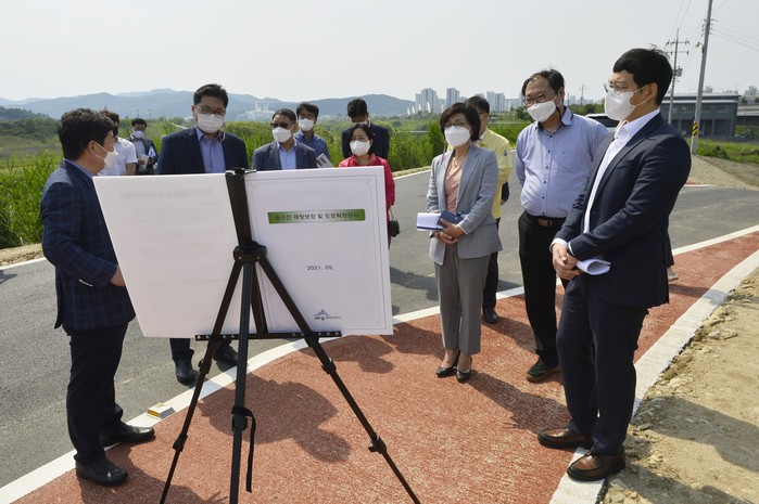 또한 금남면 용수천 제방도로 공사현장에서 제방도로 확장 공사 현장 및 숲뜰근린공원 운영 현황을 점검하고 시민들이 숲뜰근린공원 이용하기 위해서는 먼길을 돌아가야 하는데 접근성과 편의성을 높이기 위한 새로운 진출입 방안에 대해 함께 검토해 줄 것을 당부했다.