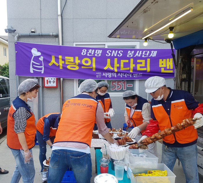 [세계타임즈 이장성 기자] 다양한 봉사를 꾸준히 실천하고 있는 SNS 대전시 봉사단체 사랑의 사다리 밴드(리더 이정제)는 15일 오후14시~오후16시, 계룡시 엄사면에 위치한 늘평안주야간보호센터(센터장 허연무)에서 바비큐 통닭 봉사로 사회적 효행을 실천하였다.