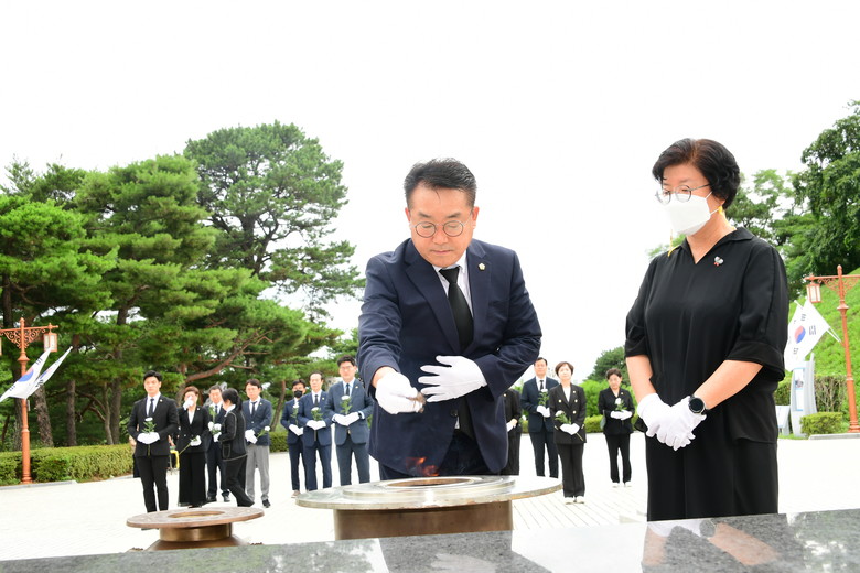 정무창 의장은 “새롭게 출범한 9대 개원을 맞아‘시민 중심의 열린 의회’로 만들어 나갈 것을 5·18민주영령과 호국영령, 순국선열의 숭고한 넋 앞에서 굳게 다짐했다.”고 밝혔다.