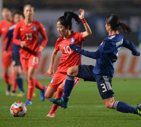 1차전에서 호주와 비긴 한국은 이날 일본을 꺾으면 단독 선두로 오를 수 있어 2019 프랑스 여자 월드컵 출전권 획득에 바짝 다가선다.