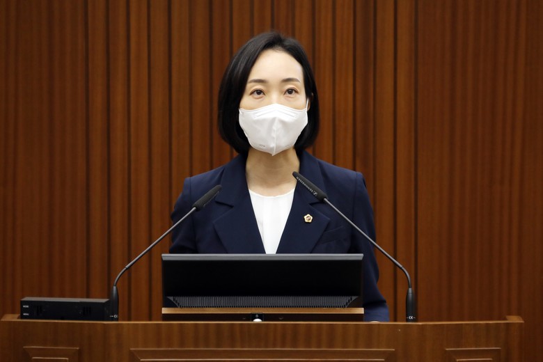 김효숙 의원은 5분 발언에 앞서 지난 7일 경기도 평택의 한 초등학교 앞 횡단보도에서 발생한 초등학생 교통사고 사망사건에 대해 애도를 표하고 어린이 교통사고 사상자 문제를 거론했다.