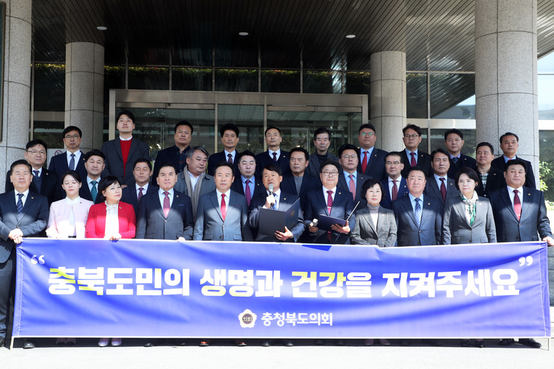 지난달 28일 ‘충북지역 의사 집단행동에 대한 호소문’에 이은 두 번째 호소문 발표로 황영호 의장을 비롯한 도의원들이 참석했다.