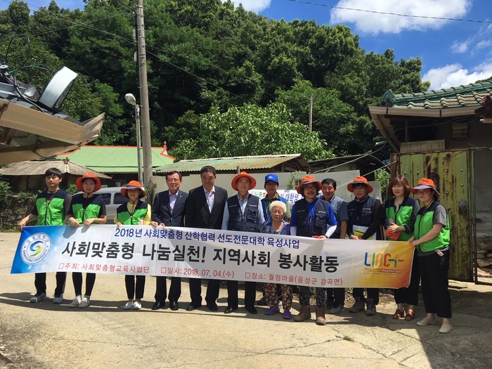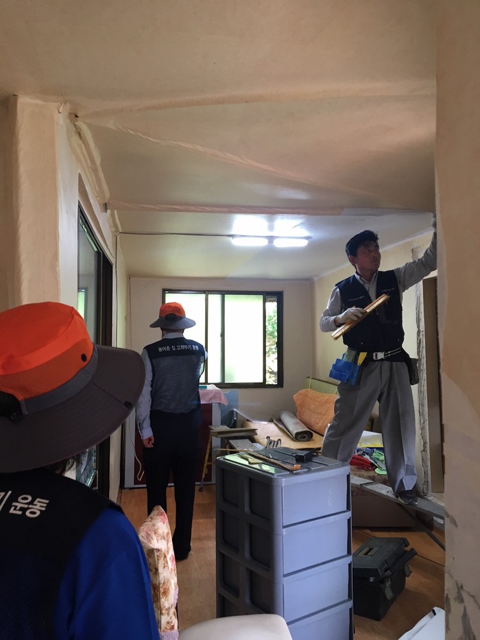 이번 여름방학에도 어김없이 강동대 김승근교수와 강동대 건축과 학생들은, 폭염의 무더위에 구슬 땀을 흘려가며, 음성 월정 농촌마을을 찾아가 회관에서 숙식을 하며, 월정마을 독거노인 및 장애아 가족 5가구의 집수리를 진행하고 있다.