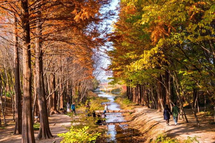 통일전에 왔다면 절대로 지나치지 말아야 할 곳. 가을 산책의 명소 ▲산림환경연구원이 바로 인근에 있다. 수목원을 방불케 하는 자연이 전해주는 멋진 풍경을 온전히 담을 수 있는 곳이다. 가을이면 울긋불긋 오색으로 물든 다양한 나무 군락사이로 가을 정취를 질리게 느낄 수 있다. 연인, 가족끼리 와도 좋고 혼자서 고즈넉하게 가을을 즐기는 것도 좋다. 산행이 아니라 평지를 걸으며 가을에 흠뻑 취하고 싶다면 방문하시라. 단 산림연구원 동편이 공사 중이라 절반 밖에 감상할 수 없다는 점이 아쉽다. 그래도 실망 하지 마시길. 길옆으로 난 산책로 따라 통일전 쪽으로 걸으면 정강왕릉과 헌강왕릉의 고즈넉한 산길로 이어지는 힐링코스가 기다리고 있다.