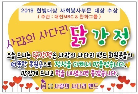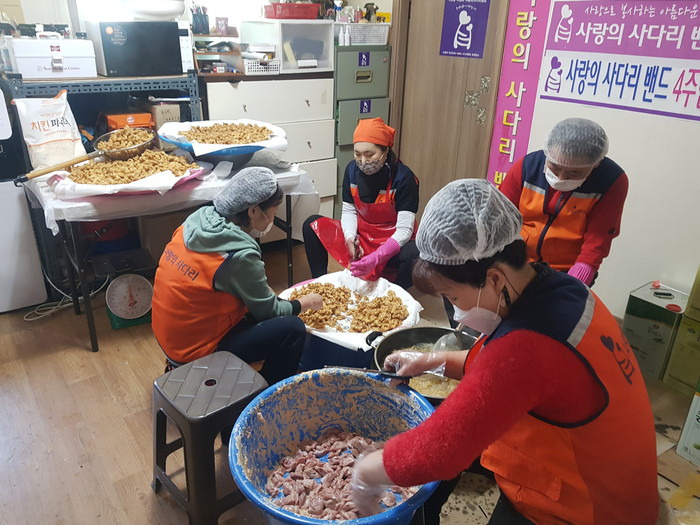 [대전=세계타임즈 이채봉 기자] 9천명 SNS 대전시 봉사단체 사랑의 사다리 밴드(리더 이정제)는 18일 오후 3시, 보문장애인자립생활센터(30개)와 대전시발달장애인부모협회(50개)에 닭강정 봉사로 우리 사회의 따뜻한 사랑을 실천 하였다.