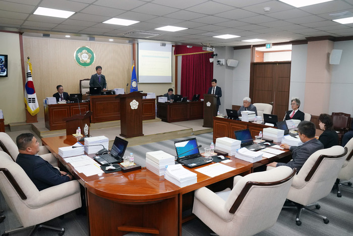 [양구군=세계타임즈 김민석 기자] 양구군의회 제255회 제2차 정례회 개회식이 25일 의회 본회의장에서 조인묵군수, 이상건의장, 박귀남부의장, 의원, 실과소장들이 참석한 가운데 열렸다.