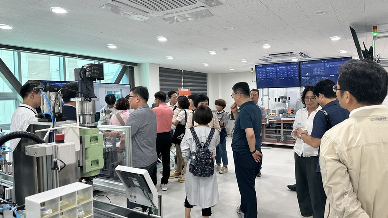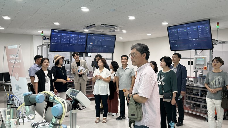 [아산시 세계타임즈=백택기 기자] 아산스마트팩토리마이스터고(교장 조동헌, 이하 스마트고)는 9월 11일(월) 교육부중앙교육연수원 고급관리자과정 연수생을 대상으로 교육현장 탐방 프로그램을 운영했다. 이번 연수는 현재 전국 시도교육청 3,4급 43명과 연수원 관계자 등 46명을 대상으로 하여, 진로교육, 융합교육, 미래교육을 위한 전문 진로·직업교육 기관 현장 탐방을 통해 융합적 정책 역량 제고 및 맞춤형 미래교육을 실현하기 위해 실시되었다.