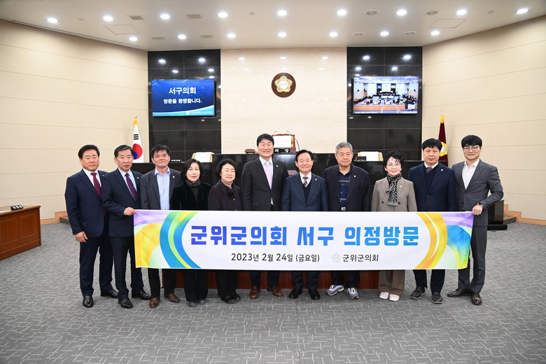 이날 군위군의회는 대구시 서구의회와 의정활동에 대해 정보를 공유하고 서구의회 청사 견학을 하였다.