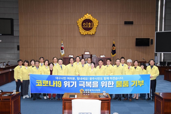 광주시의회는 23명 의원 전원의 자발적 참여로 모은 성금으로 마련한 마스크 5천장을 대한적십자사를 통해 대구시의회로 지정기탁하였다고 27일 밝혔다.